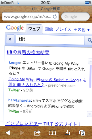余談 : iPhone/iPodtouchのSafariで tilt とググると、画面が傾きます。